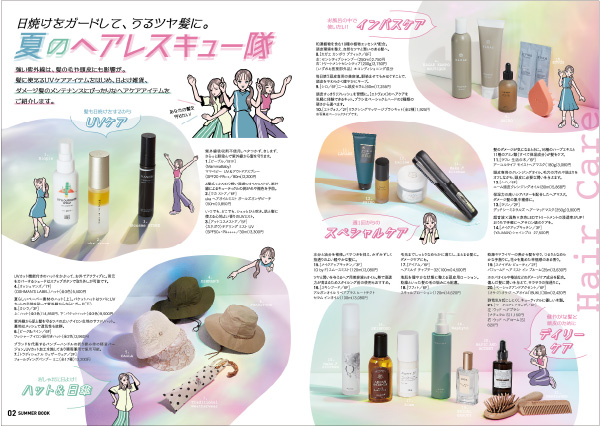 タカシマヤ ゲートタワーモールならではの夏のライフスタイル提案と館の最新情報をお届けしているストアマガジン『SUMMER BOOK』。企画提案から携わり、UV対策をはじめとしたヘアケアイテムや暑くて寝苦しい時期にぴったりの快眠グッズ、カラフルなペディキュア特集など、夏を楽しむための企画を12ページで編集。表紙は、ターゲット世代に人気のレトロポップなタッチなイラストが得意なイラストレーターを起用し、夏のワクワク感を醸成。中面も夏らしい光と色、イラストを使い、楽しさを意識してデザインしました。