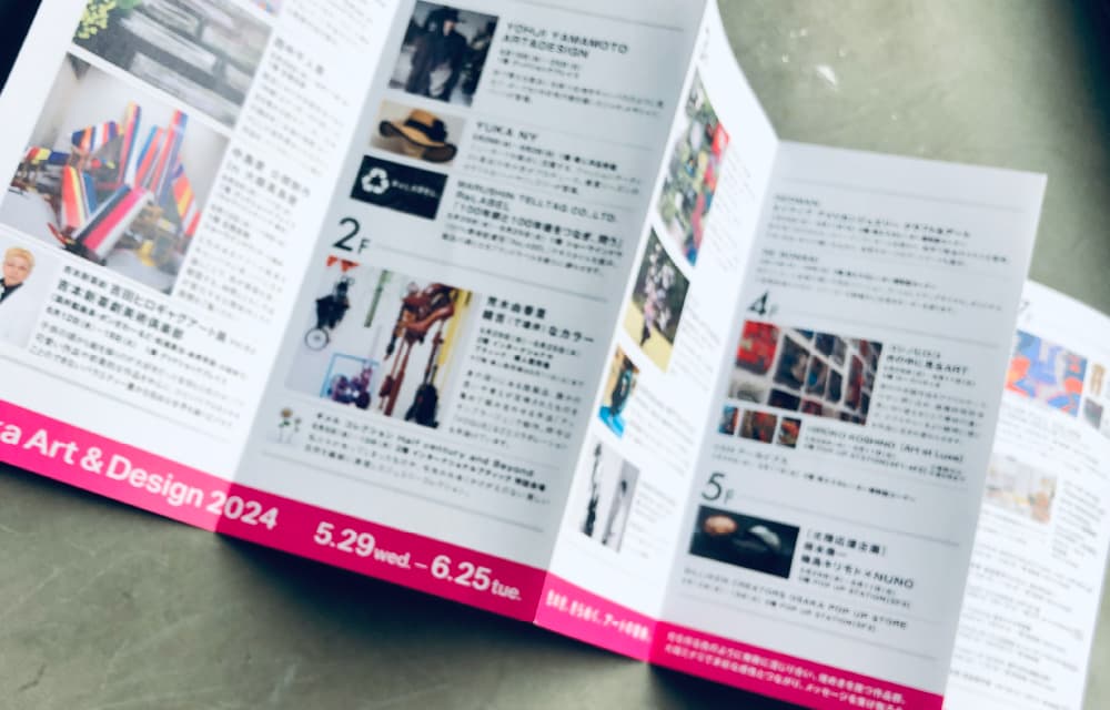 大阪の街をめぐり、アートやデザインとの出会いを楽しむ周遊型イベント“Osaka Art & Design”。2024年は「Resonance 共鳴の拡張」をテーマに、それぞれの属性や領域を超えて共鳴を呼び起こす作品が集結しました。ATAは高島屋大阪店のコンセプトメイク〜店内装飾〜WEB・動画・グラフィック等のデジタル領域までを担当。フライヤーは大阪店独自のテーマ「COLORS of LIGHT」をイメージしたレインボー箔を表紙ロゴに使うなど工夫しました。